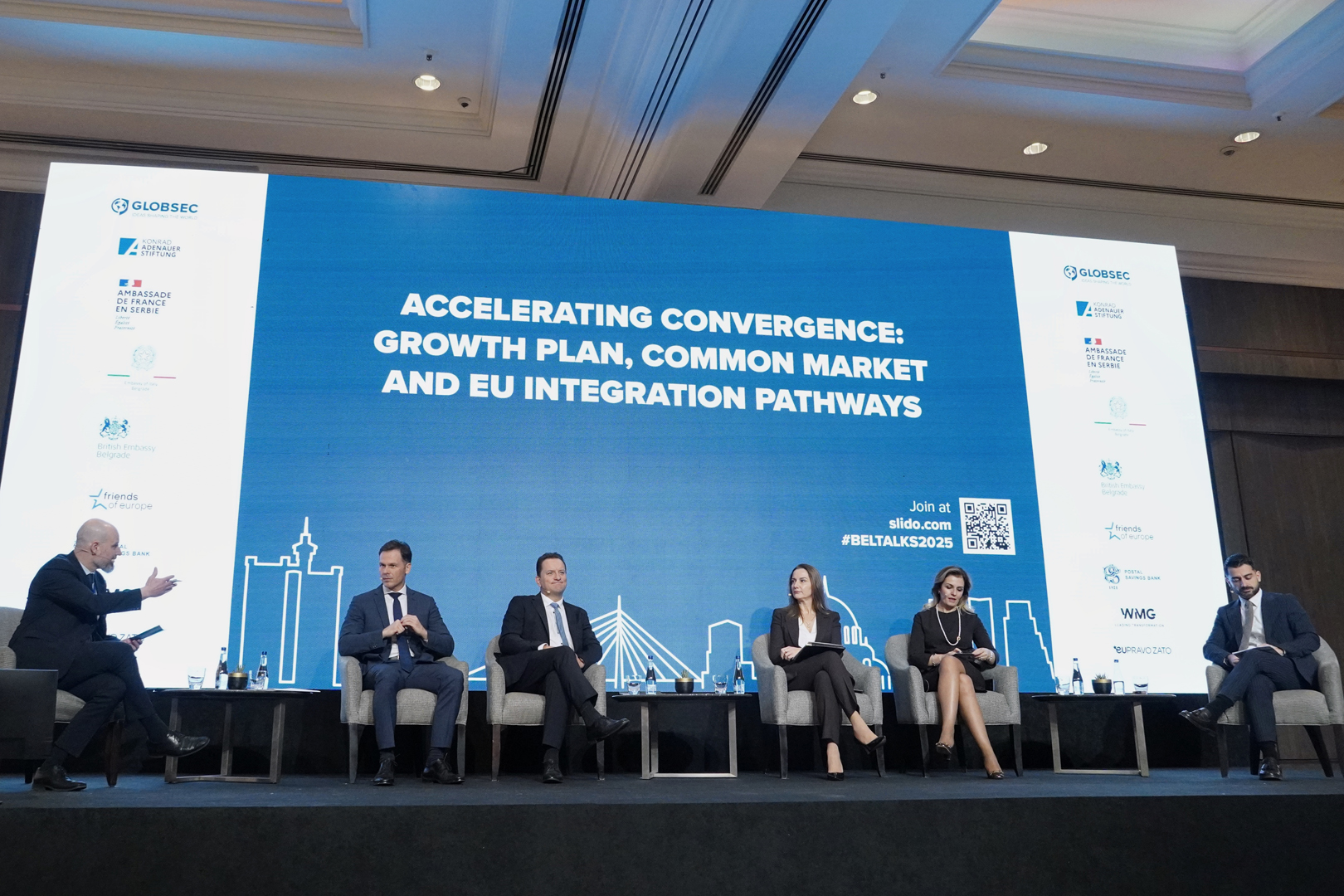 On je govorio na panelu na kome su učestvovali šef Generalnog direktorata Evropske komisije za proširenje i istočno susedstvo Jirži Pleciti, direktorka Sekretarijata CEFTE Pranvera Kastrati, viši saradnik organizacije „Friends of Europe“ i Atlantskog saveta Valbona Zeneli, viši ekonomski savetnik Organizacije za ekonomsku saradnju i razvoj (OECD) Umur Gokče, uz moderiranje višeg saradnika GLOBSEC-a i bivšeg poslanika Evropskog parlamenta Vladimira Bilčika.