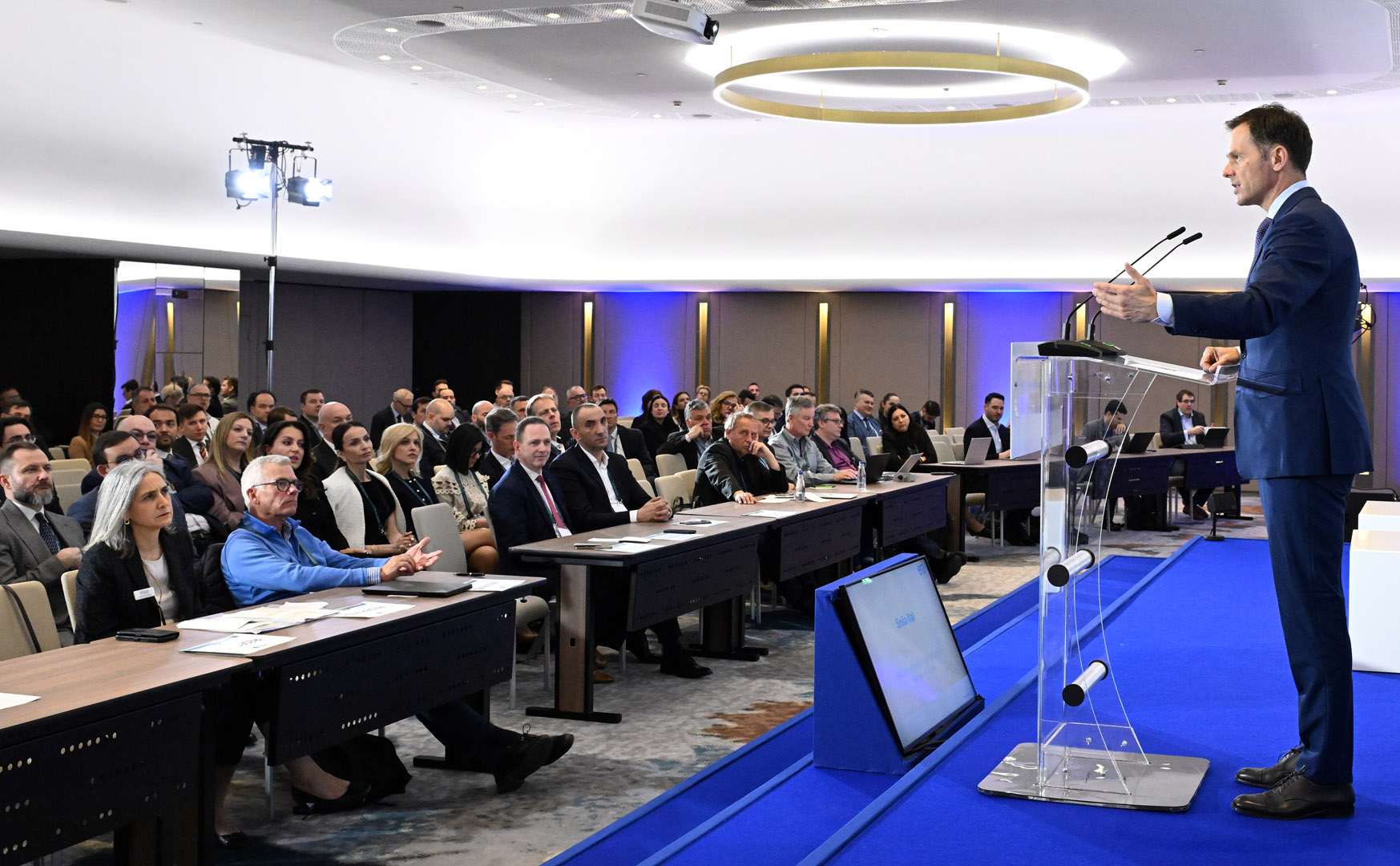 Mali je učesnicima skupa predstavio makroekonomske parametre Srbije rečima da je naša zemlja među tri ili četiri zemlje u Evropi po brzini ekonomskog rasta, makroekonomski stabilna, te da je do toga došla nakon što je 2012. godine bila zemlja pred bankrotom.